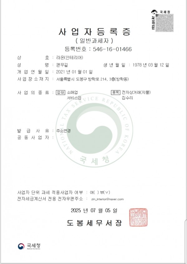 사업자 등록증과 65UH7F 견적서 이메일 zin_interior@naver.com 로 보내주세요.